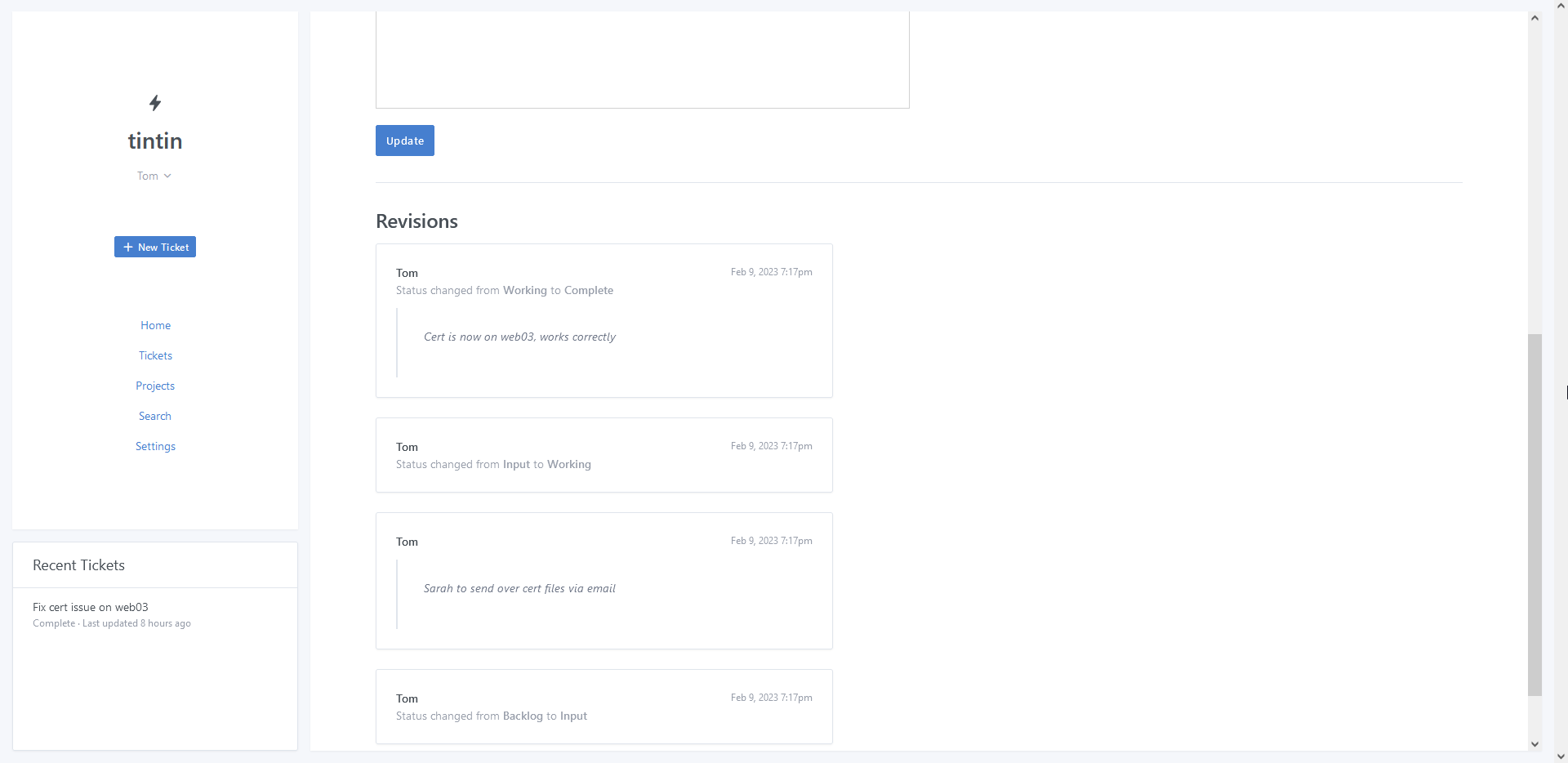 Tintin 2 is a ticketing system which is an update to the original Tintin created.